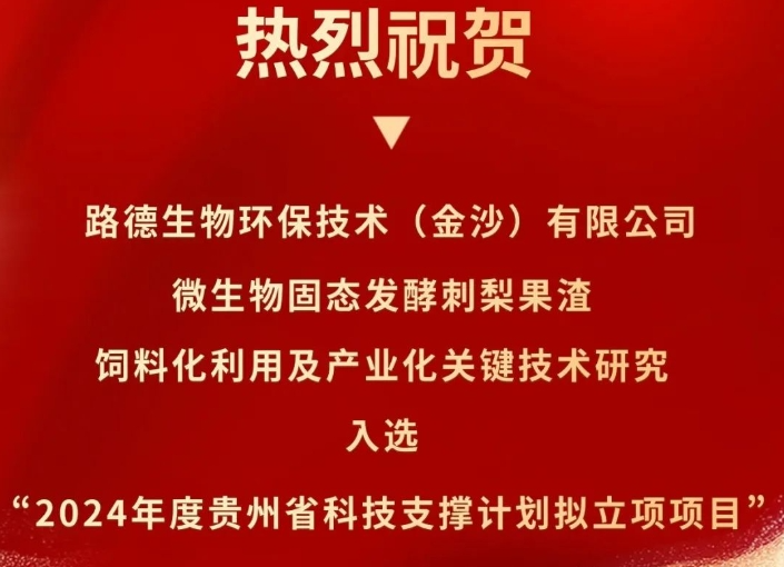 近日,貴州省科學(xué)技術(shù)廳公布了省科技計劃擬立項項目,路德環(huán)境旗下子公司——路德生物環(huán)保技術(shù)(金沙)有限公司承擔(dān)的“微生物固態(tài)發(fā)酵刺梨果渣飼料化利用及產(chǎn)業(yè)化關(guān)鍵技術(shù)研究”項目,入選“2024年度貴州省科技支撐計劃擬立項項目”。 此項殊榮,是路德環(huán)境以技術(shù)創(chuàng)新,引領(lǐng)有機糟渣資源化業(yè)務(wù)從白酒糟向其它食品飲料糟渣多元拓進、開辟公司可持續(xù)發(fā)展新賽道的重要一步。未來,隨著該科研項目不斷取得新突破,勢必將與貴州刺梨產(chǎn)業(yè)“延伸產(chǎn)業(yè)鏈、完善供應(yīng)鏈、提升價值鏈”形成高度匹配,為貴州省打造百億級特色優(yōu)