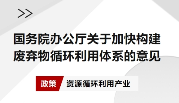春節前夕,國務院辦公廳發布《關于加快構建廢棄物循環利用體系的意見(點擊閱讀政策原文)》(國辦發〔2024〕7號,以下簡稱《意見》)。 這是繼2022年1月國家發改委等7部委聯合發布《關于加快廢舊物資循環利用體系建設的指導意見》之后,我國為加快構建覆蓋全面、運轉高效、規范有序的廢棄物循環利用體系、推動發展方式全面綠色轉型而做出的全新頂層設計和總體部署。 5萬億產業蓄勢待發 《意見》分2025年、2030年兩個階段,提出了廢棄物循環利用的工作目標。 《意見》指出,到2025年,初步建成覆蓋各領域、各環節的廢棄物循環利用體系,尾