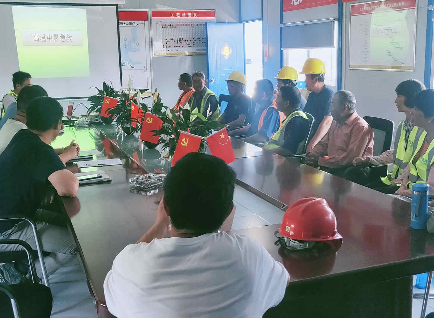 為有效預防和控制職工中暑事件發生,保證職工身體健康,切實做好夏季高溫期間安全生產工作,2021年6月,路德環境科技股份有限公司各項目部從防暑降溫知識培訓、落實防暑措施等方面入手積極組織開展了演練及培訓,筑牢防暑安全“大堤”。 高溫防暑培訓 開展防暑降溫知識培訓,由安全員從防暑措施管理規定、高溫引發的危害、中暑的預防與急救三方面向大家講解夏季防暑降溫知識,增強職工的防暑降溫意識,提高自我防護能力。 防暑演練能及時、有效地指導大家如何處置由高溫天氣引發的模擬中暑事件,規范地對高溫中暑事件的應急救援工作作出了講解,提升了現場作業人員應對突發事