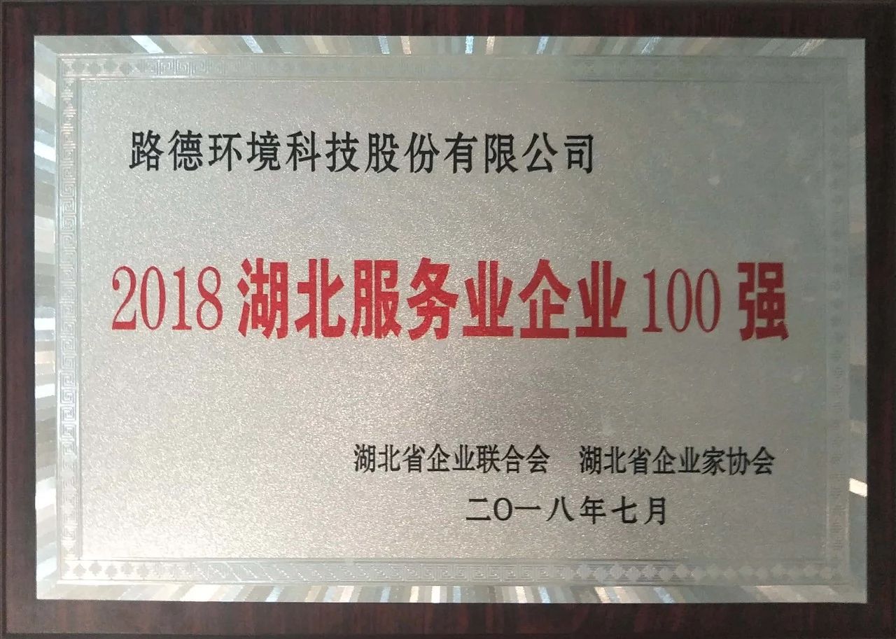 2018-08-07熱烈祝賀“路德環境科技股份有限公司”榮膺 2018 湖北服務業企業100強