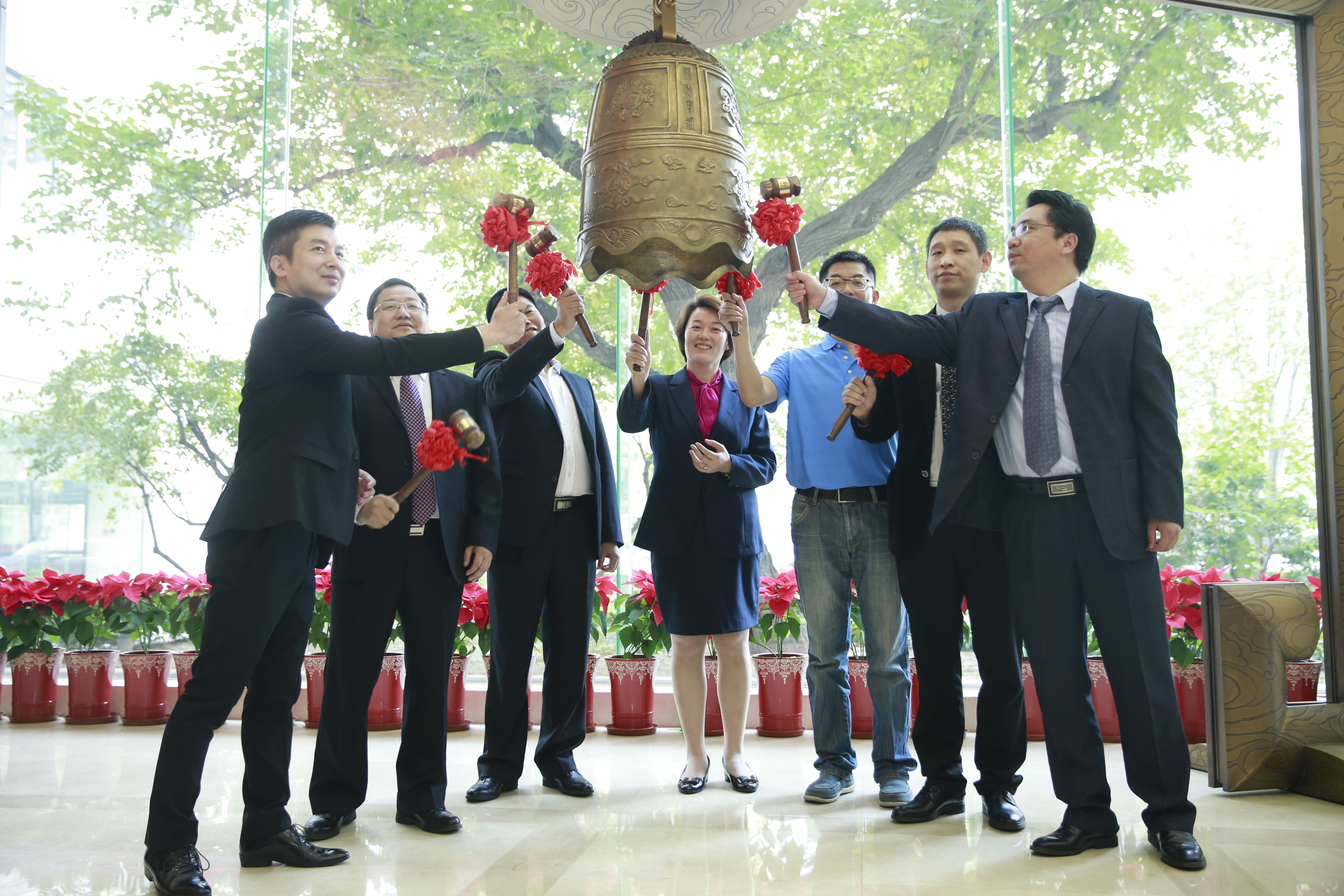 2015-10-2110月16日路德環境在北京參加新三板掛牌儀式 副總經理兼董事會秘書黃郴先生代表路德環境敲響金鐘