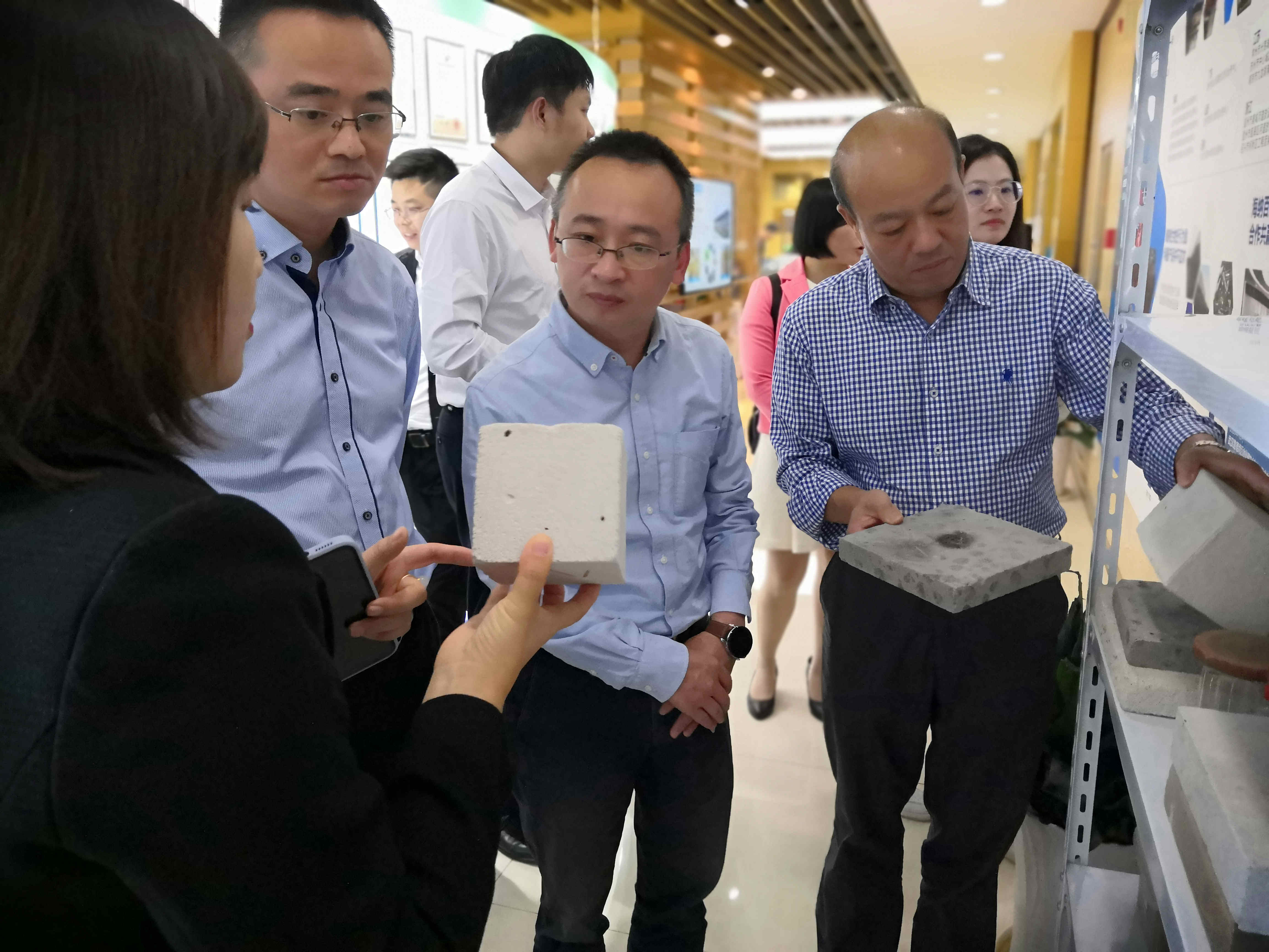 在脫水泥餅資源化利用展臺(tái)前,陳新華一行對(duì)公司研發(fā)的新型墻材磚很感興趣。劉菁女士介紹道,這是公司通過(guò)自主研發(fā)的淤泥脫水固結(jié)一體化技術(shù)制作的蒸壓加氣混凝土砌塊,這種新型墻材磚很輕,加氣塊的泥餅摻量達(dá)到30%以上,替代了傳統(tǒng)材料中粉煤灰、沙石中的有效成分,該項(xiàng)技術(shù)屬國(guó)內(nèi)首創(chuàng)。