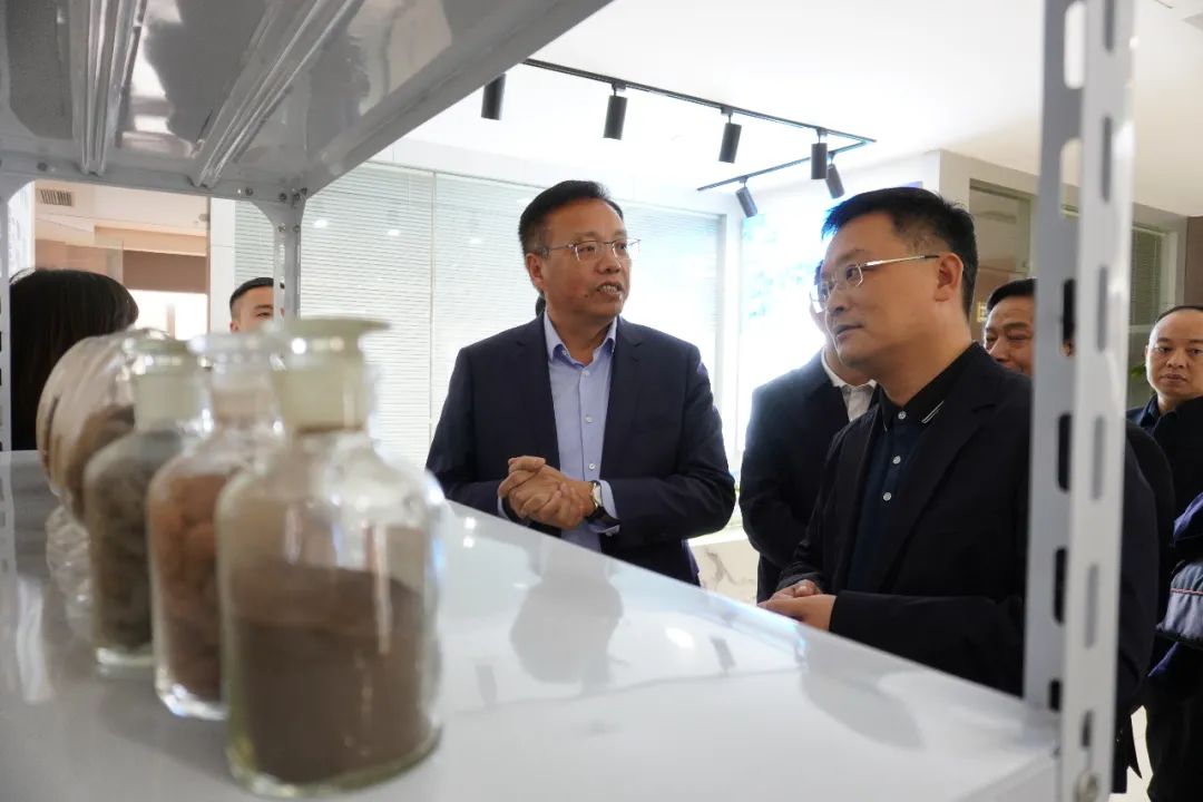 路德環境董事長、總經理季光明、董事會秘書劉菁、古藺路德董事長趙騰等進行了熱情接待。季光明向梁錚一行介紹了路德環境的發展歷程,并參觀了公司的專利墻、河湖淤泥和工程泥漿綜合處理中心沙盤區及研發產品展示區。梁錚對路德環境的科技研發實力表示贊嘆,對河湖淤泥綜合處理中心大體量、高效能、可復制的工廠化運營模式表示高度肯定。