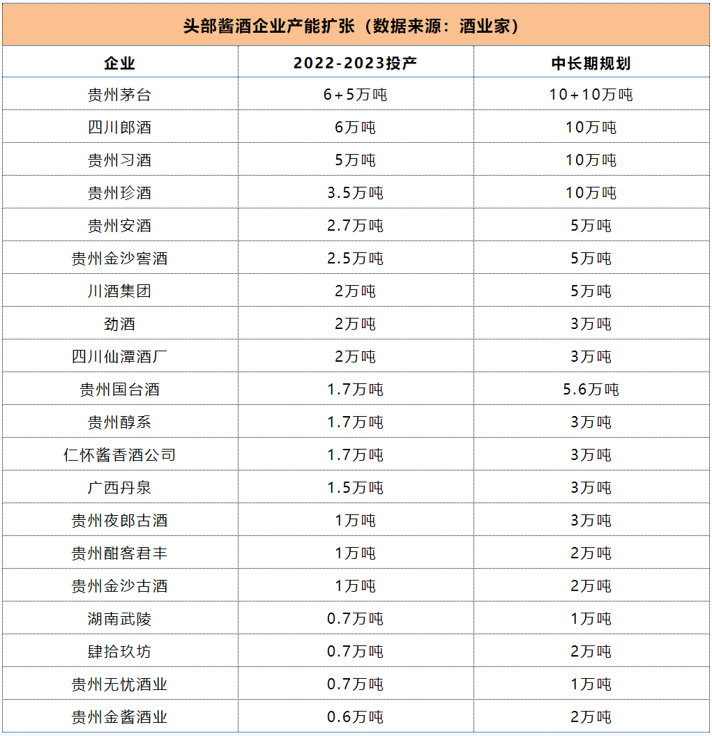 【產能】頭部醬酒企業產能軍備競賽提速,預計到2030年之前,我國醬酒產業整體產能將會突破100萬噸。