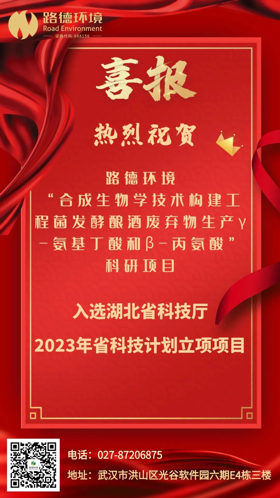 【路德·喜報】熱烈祝賀公司研發項目入選“湖北省科技廳2023年省科技計劃立項項目”