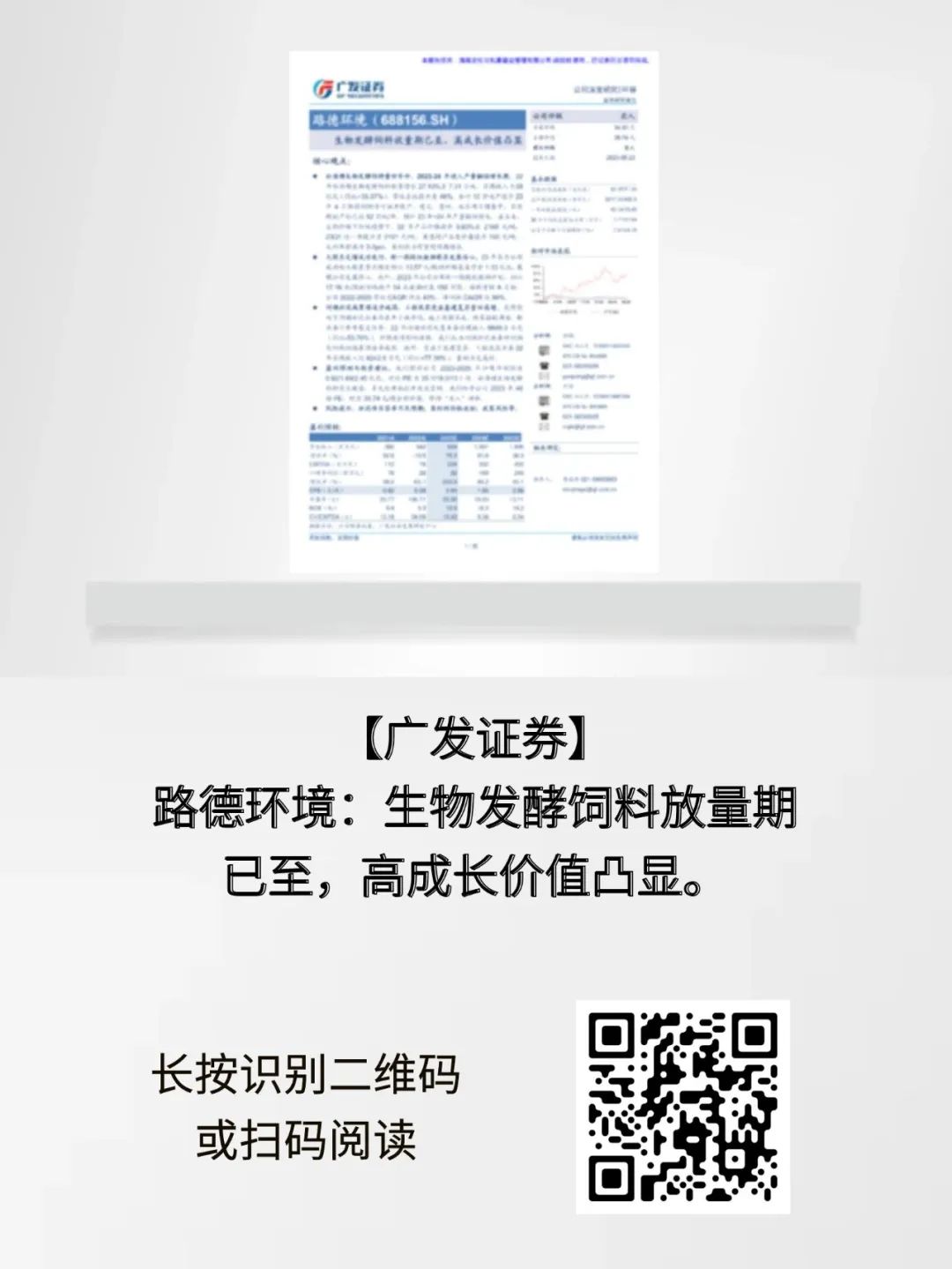 2023年5月23日,廣發證券發布了以《路德環境:生物發酵飼料放量期已至,高成長價值凸顯。》為主題的深度證券研究報告,對公司業務發展進行全方位點評,并維持了“買入”評級。