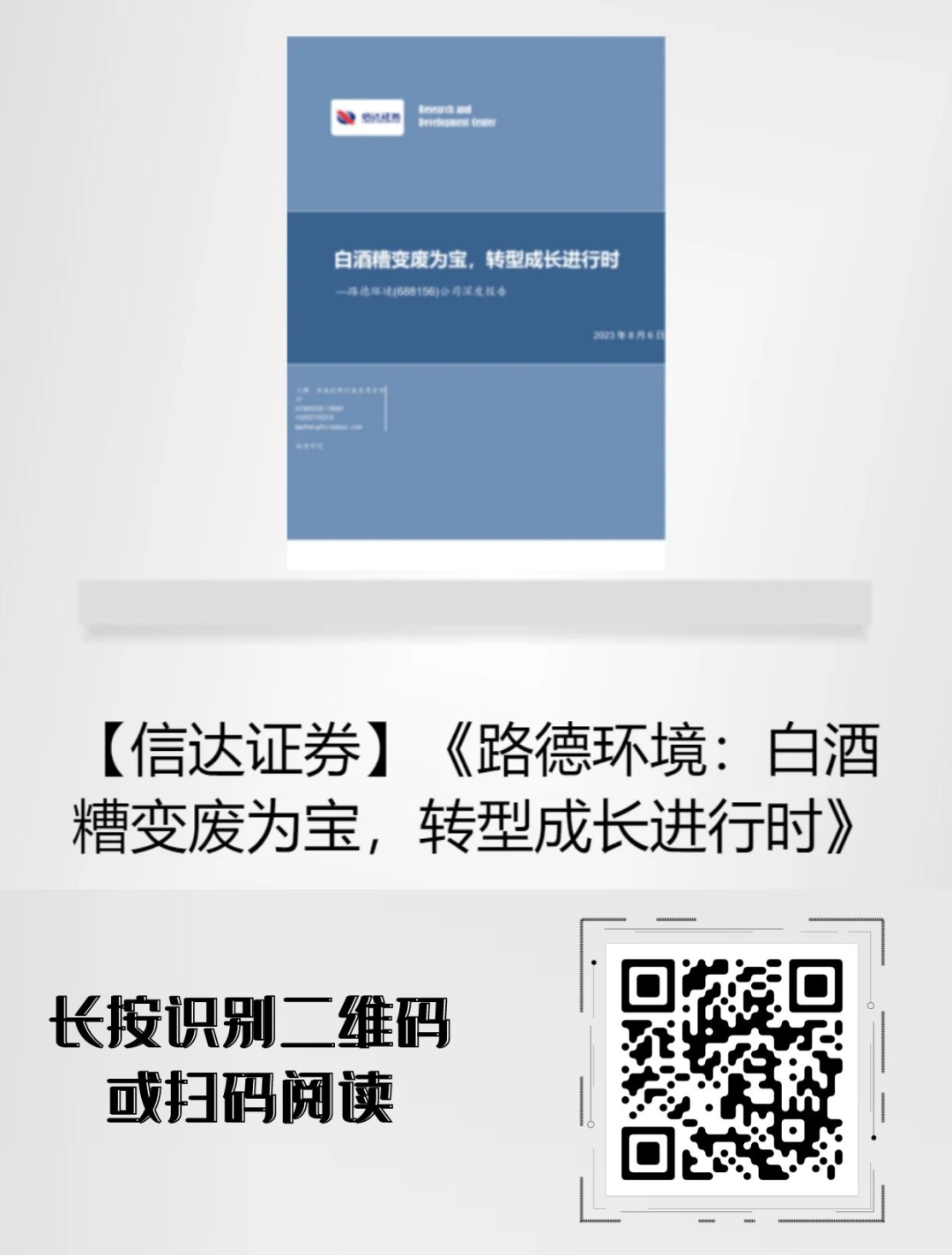 2023年8月6日,信達證券發布了以《路德環境:白酒糟變廢為寶,轉型成長進行時》為主題的深度證券研究報告,首次覆蓋路德環境,并給予了“買入”評級。