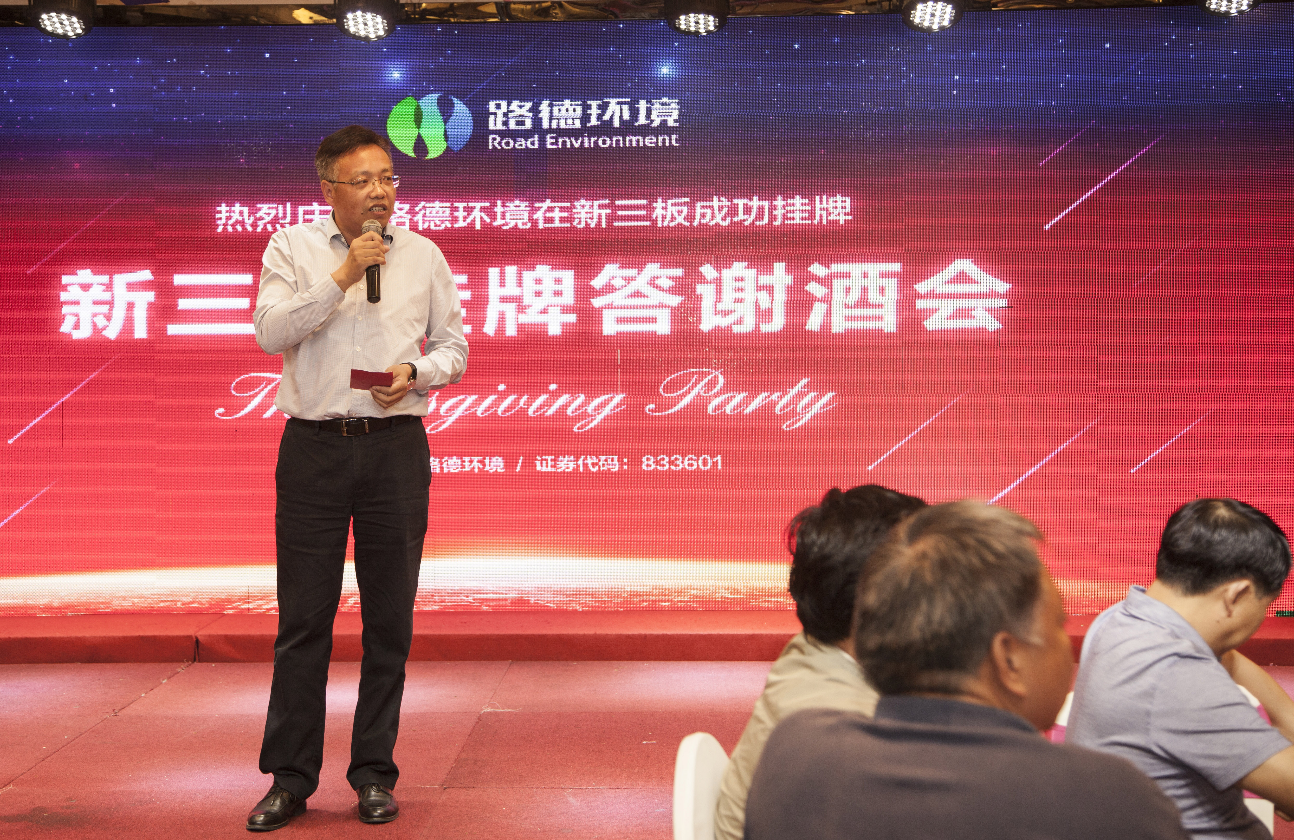 為慶祝代碼為833601的“路德環(huán)境”在2015年10月8號(hào)順利登錄新三板,10月9日晚,路德環(huán)境新三板掛牌答謝酒會(huì)在光谷紐賓凱國(guó)際大酒店宴會(huì)廳隆重舉行。