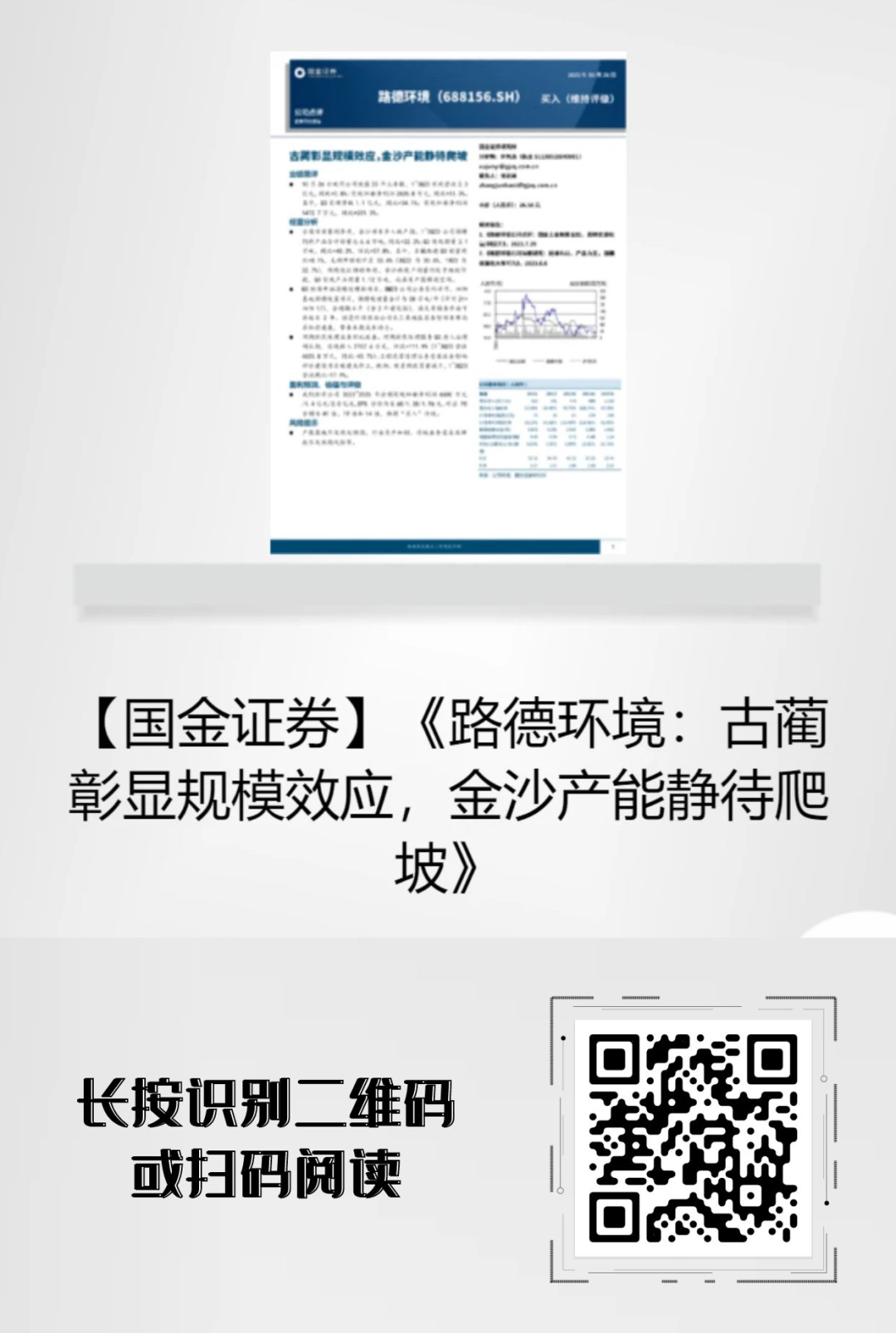 【點評報告】國金證券點評路德環(huán)境:古藺彰顯規(guī)模效應,金沙產(chǎn)能靜待爬坡