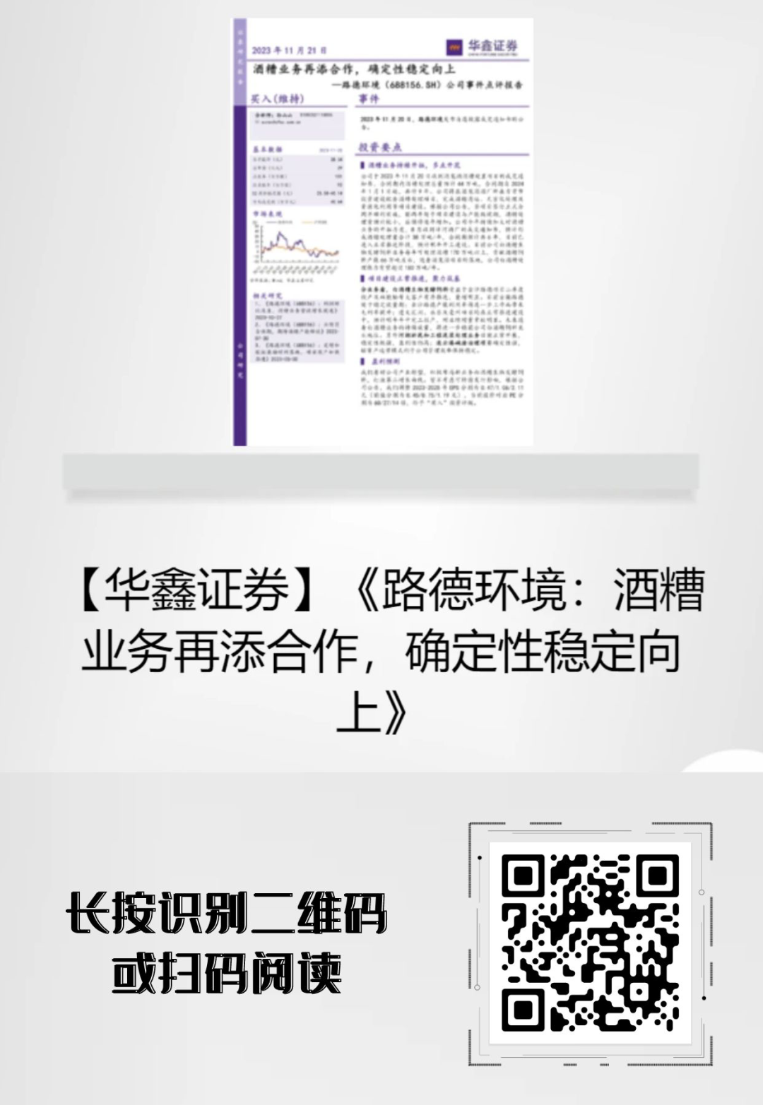 2023年11月20日,路德環(huán)境自愿披露收到酒鬼酒股份有限公司酒糟處置項(xiàng)目《成交通知書(shū)》的公告,華鑫證券發(fā)布點(diǎn)評(píng)報(bào)告,對(duì)該事件進(jìn)行點(diǎn)評(píng)分析,并對(duì)公司未來(lái)發(fā)展前景給予肯定。