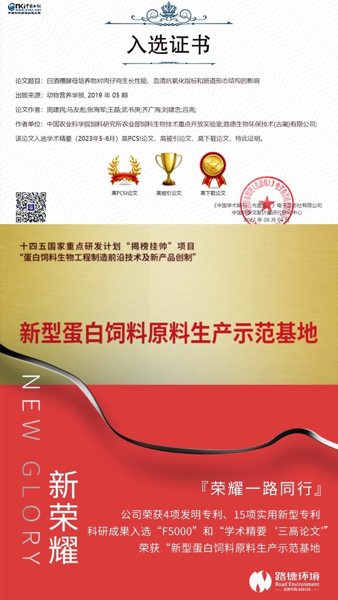 公司榮獲19項(xiàng)技術(shù)專利(4項(xiàng)發(fā)明專利、15項(xiàng)實(shí)用新型專利);合成生物科研項(xiàng)目入選湖北省科技廳2023年省科技計(jì)劃立項(xiàng)項(xiàng)目;產(chǎn)品應(yīng)用科研成果入選“F5000”和“學(xué)術(shù)精要‘三高論文’”;公司榮獲“新型蛋白飼料原料生產(chǎn)示范基地”稱號(hào);河湖淤泥處理項(xiàng)目獲評(píng)“2023年度武漢環(huán)保產(chǎn)業(yè)優(yōu)秀環(huán)保項(xiàng)目案例”;獲評(píng)“中核集團(tuán)合格供應(yīng)商”。