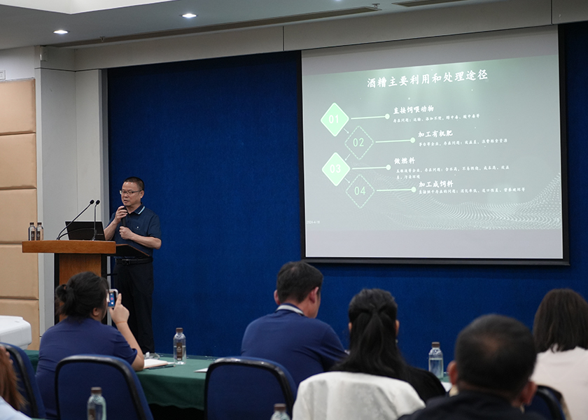 沈教授結(jié)合路德環(huán)境在白酒糟發(fā)酵飼料領(lǐng)域的研發(fā)、探索及應(yīng)用實踐,從飼料資源短缺的思考、白酒糟資源與利用現(xiàn)狀、白酒糟發(fā)酵原料的價值、白酒糟發(fā)酵原料在畜牧業(yè)的應(yīng)用等方面進行了分析與分享,沈教授提出當(dāng)前國內(nèi)飼料資源面臨短缺,運用工業(yè)化思維開發(fā)利用非糧型飼料資源,尤其是白酒糟、醋糟等營養(yǎng)價值高的飼料原料,市場前景非常廣闊,引發(fā)了現(xiàn)場聽眾激烈的討論。