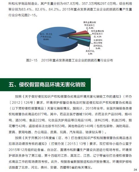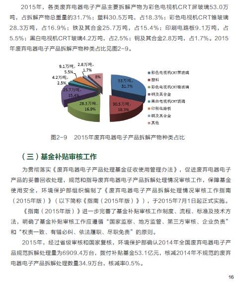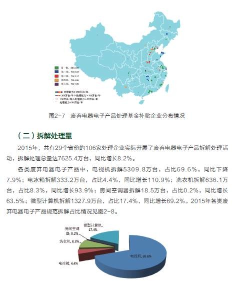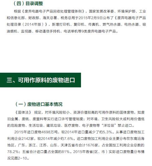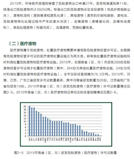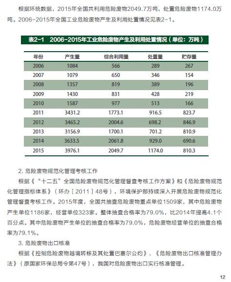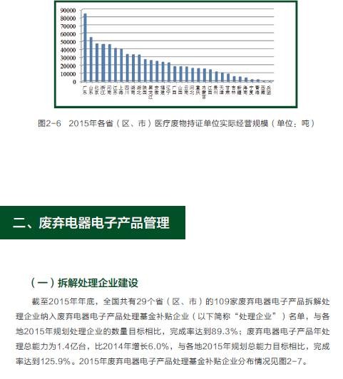 2015年,在危險(xiǎn)廢物污染防治工作方面,全國各省(區(qū)、市)頒發(fā)的危險(xiǎn)廢物經(jīng)營許可證共2034份,經(jīng)營單位核準(zhǔn)利用處置規(guī)模已達(dá)到5263萬噸/年,實(shí)際經(jīng)營規(guī)模為1536萬噸;持續(xù)深入開展危險(xiǎn)廢物規(guī)范化管理督查考核工作,各環(huán)境保護(hù)督查中心共抽查1509家企業(yè),整體抽查合格率為79.0%,比2014年提高4.1個(gè)百分點(diǎn)。在電子廢物污染防治方面,全國共有29個(gè)省(區(qū)、市)的109家廢棄電器電子產(chǎn)品拆解處理企業(yè)納入廢棄電器電子產(chǎn)品處理基金補(bǔ)貼企業(yè)名單,廢棄電器電子產(chǎn)品年處理總能力為1.4億臺,實(shí)際拆解處理總量達(dá)7625.4萬臺,同比增長8.2%。在可用作原料的廢物進(jìn)口方面,2015年進(jìn)口廢物4698萬噸,同比減少約5.3%;從事進(jìn)口廢物加工利用企業(yè)2142 家,同比減少約7.6%。