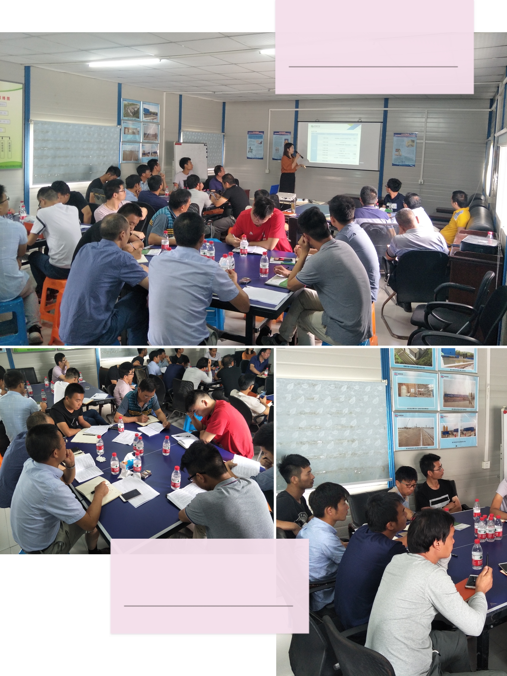 在項目檢查前,為使項目管理員工深刻理解《河湖淤泥及建筑泥漿固結一體化系統設備及實驗儀器檢測操作規程》,加深對相關設備與實驗儀器操作規程的認知。公司還組織一次項目管理人員培訓。在培訓過程中針對一些日常工作中遇到的問題,大家也踴躍的進行提問和交流,培訓會后還進行了考試,檢驗大家一天的學習成果。