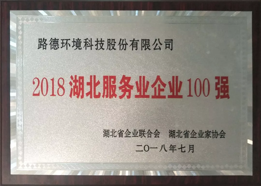 熱烈祝賀“路德環境科技股份有限公司”榮膺 2018 湖北服務業企業100強