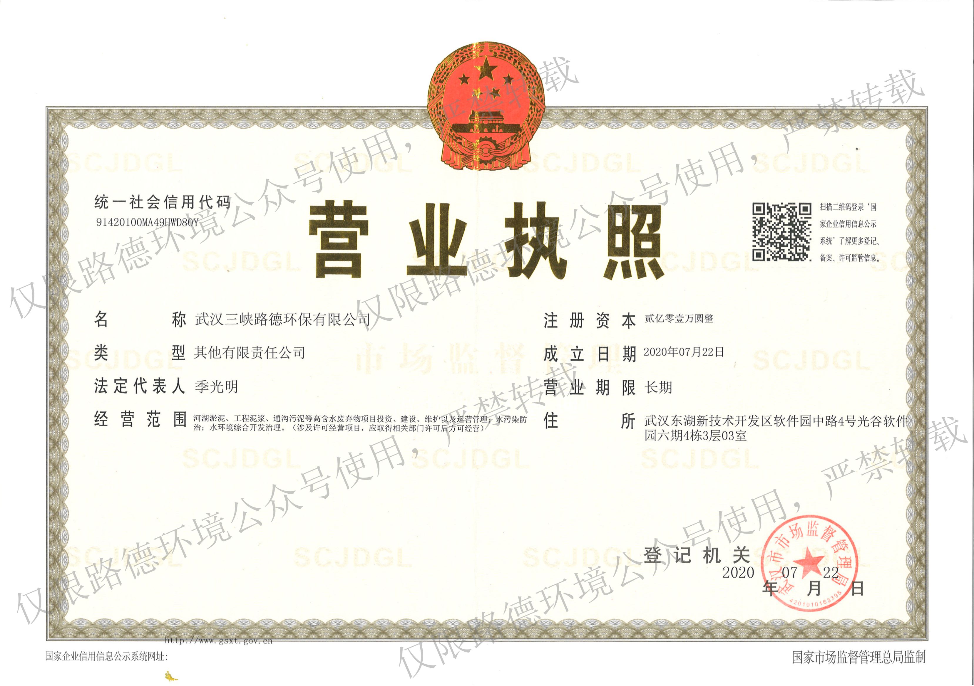 2020年7月22日,“武漢三峽路德環(huán)保有限公司”成立,注冊資本貳億零壹萬圓整,標志著路德環(huán)境與長江生態(tài)環(huán)保集團的合作,由戰(zhàn)略層面轉(zhuǎn)入資本+項目+技術(shù)的全面深度合作階段,旨在共同推進水環(huán)境治理及固體廢棄物綜合處置業(yè)務(wù)在長江經(jīng)濟帶全面布局