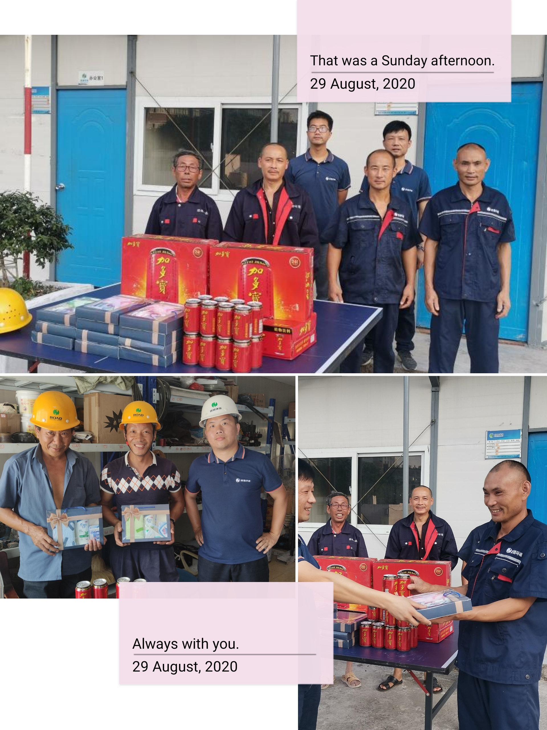 公司向項目每位一線施工人員發放了王老吉、洗發水、香皂等防暑降溫用品,每天都在現場備好西瓜、綠豆湯等解暑降溫食物,將關懷和清涼送到現場、送入人心。督促各項目部在保進度的同時,加強施工安全,保證一線工人生命健康。