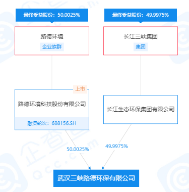 2020年7月,路德環境與長江三峽集團展開合作,成立武漢三峽路德環保技術有限公司,路德環境占股50.002%。